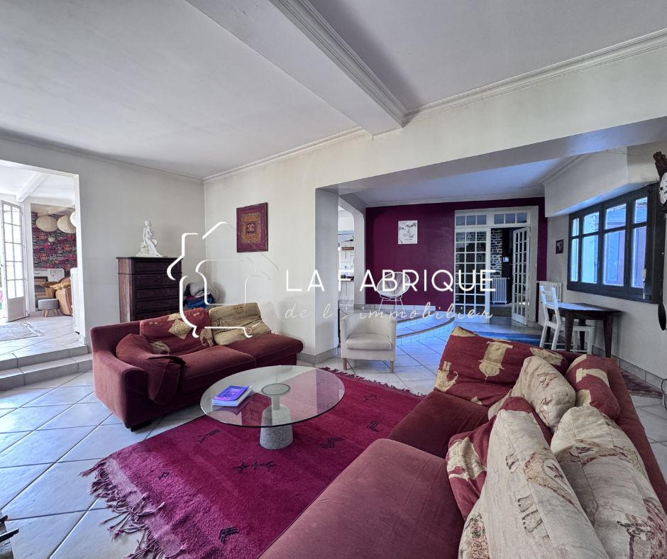 Dès l’entrée, l’escalier ancien capte le regard et donne le ton. La maison s’organise autour de beaux espaces de vie qui se succèdent avec naturel. Le salon, la salle à manger et le séjour composent un ensemble vaste et chaleureux où l’on imagine facilement les moments de partage, les grandes tablées et la vie de famille qui anime les lieux.
